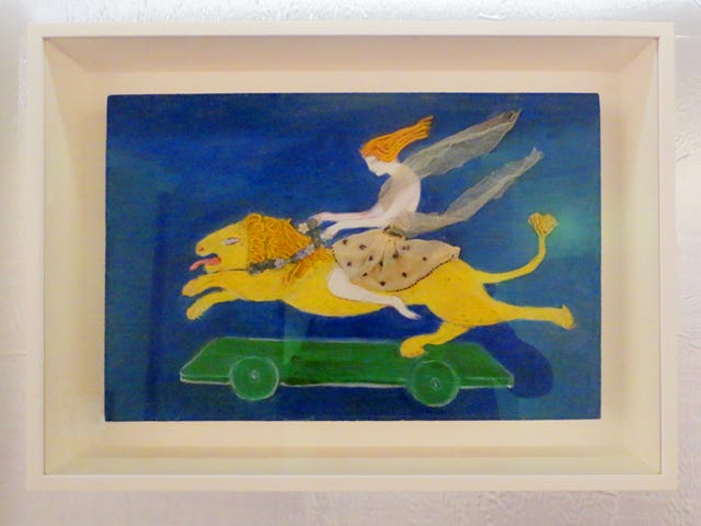 Florine Stettheimer, Costume design (Androcles and the Lion) for artist's ballet Orphée of the Quat-z-arts, c.1912 Oil, yarn, fabric, and lace on wood