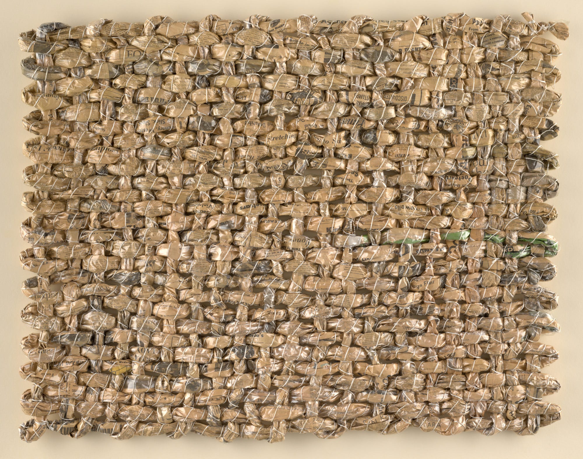 Ed Rossbach, Construction with Newspaper and Plastic Wall Hanging, 1968, Polyethylene film, twine, and newsprint