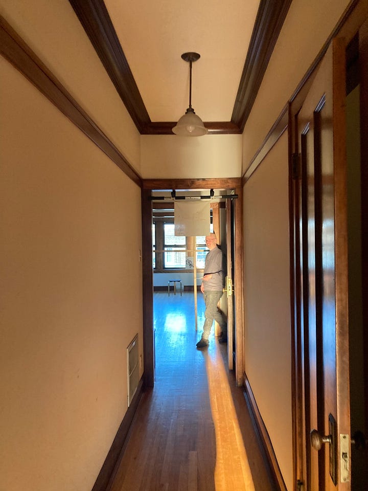 i started apartment gallery to show my dad, who had a self-described blip of a painting career in the 80’s -- he glued giant paintings to the walls of new york city -- and since then has toiled in obscurity. in the 90’s he would come home exhausted and go right to bed. after dinner he would get high and go downstairs to paint. once, either on his way down or having just returned, he confided in me his thoughts on painting. he said it was like leaping off a cliff, flailing, desperate, grabbing at anything and hoping it holds.